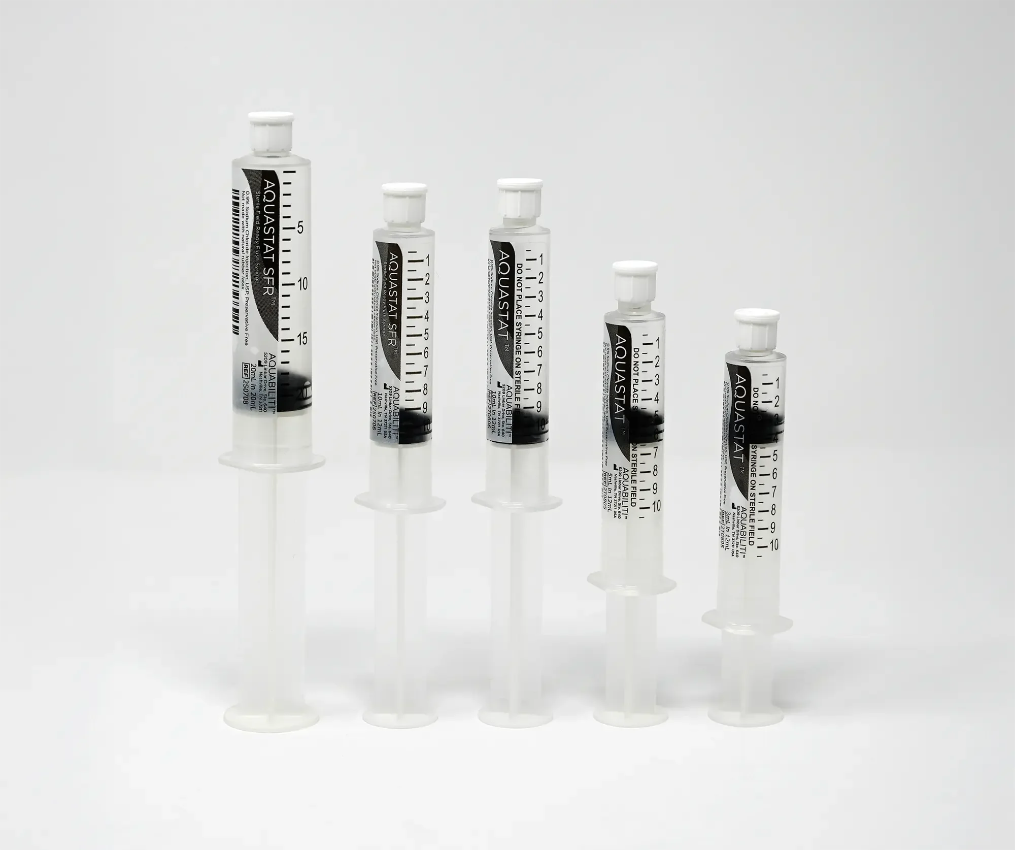 We Offer Two Pre-Filled Syringes: AquaStat SFR (Sterile Field Ready) and AquaStat SFP (Sterile Fluid and Path) Flush Syringes